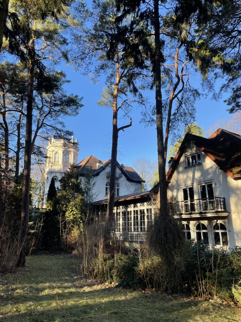 Był on również właścicielem znajdującego się w pobliżu ośrodka lecznictwa naturalnego Hugonówka. Na skarpie rzeki Jeziorki wzniesiono imponującą willę w romantycznym stylu zamkowym, przypominającym budowle stawiane w Bawarii za panowania kró la Ludwika II, znanego również jako Król Bajki. Budynek ten, zlokalizowany w Skolimowie (obecnie część Uzdrowiska Konstancin-Jeziorna), został zaprojektowany przez polskiego architekta i malarza Jó zefa Czajkowskiego. Willę otaczał rozległy park, schodzący tarasowo aż do brzegu rzeki, gdzie znajdowały się kawiarnia i restauracja oraz muszla koncertowa. Po systemie kanałów połączonych z rzeką Jeziorką pływały gondole weneckie. Latem park krajobrazowy był otwarty dla zwiedzających oraz kuracjuszy pobliskich ośrodkó w zdrowia. Nastrojowa atmosfera tego miejsca, potęgowana muzyką graną na żywo przez orkiestrę, dodatkowo podnosiła prestiż uzdrowiska, przyciągając zamożną klientelę.